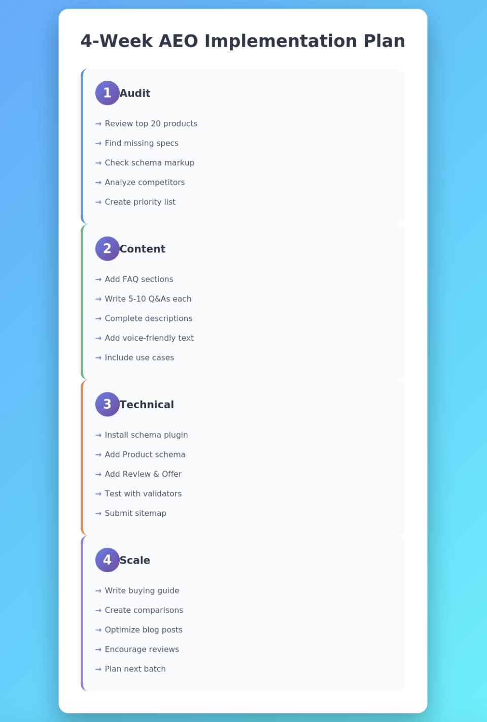 Week 1: Audit your top 20 product pages. Identify missing information and incomplete specifications.