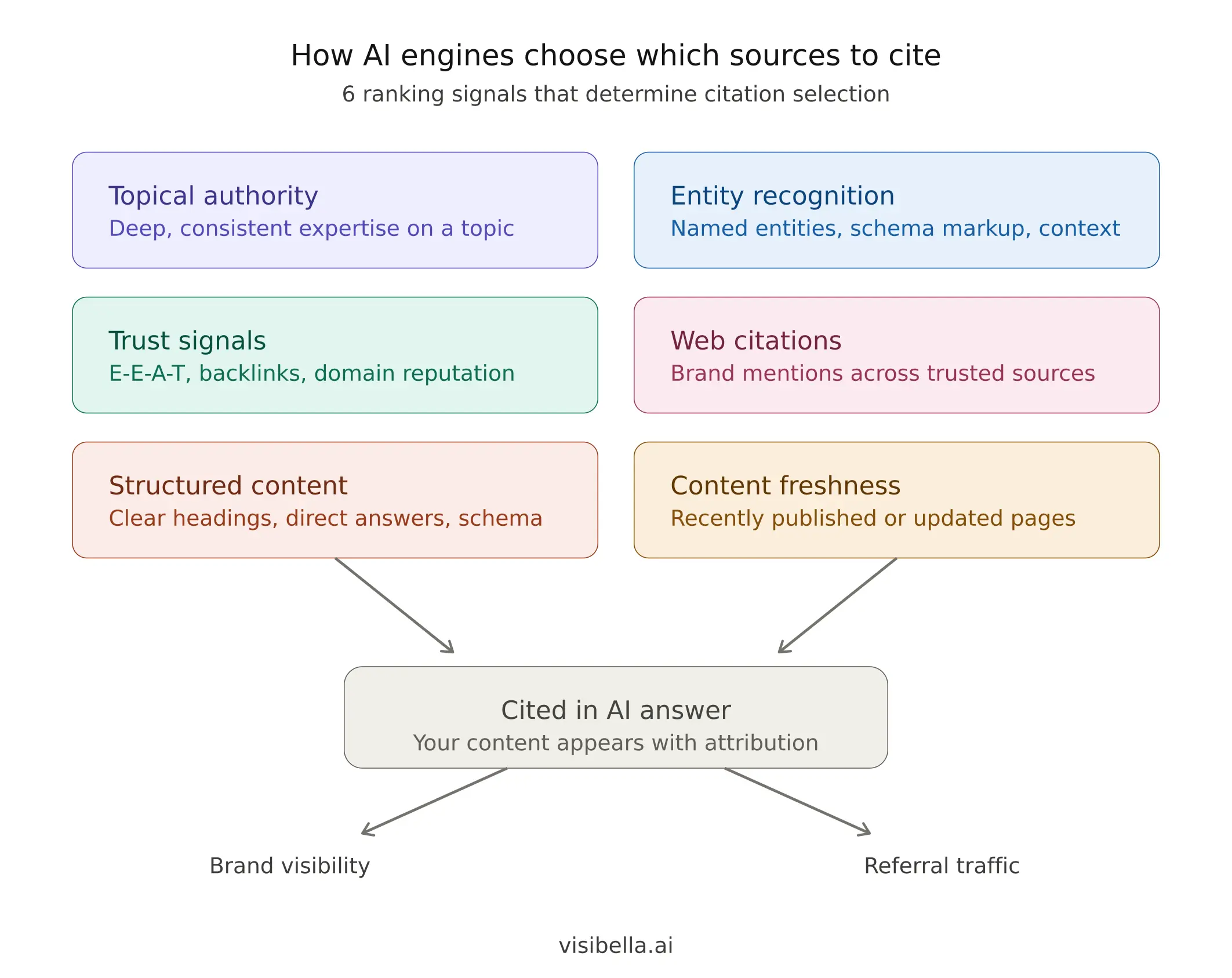 AI engines evaluate sources based on domain authority, topical relevance, content freshness, how well the content is structured, whether the brand has a strong entity presence across the web, and how consistently the source is referenced by other trusted sites.