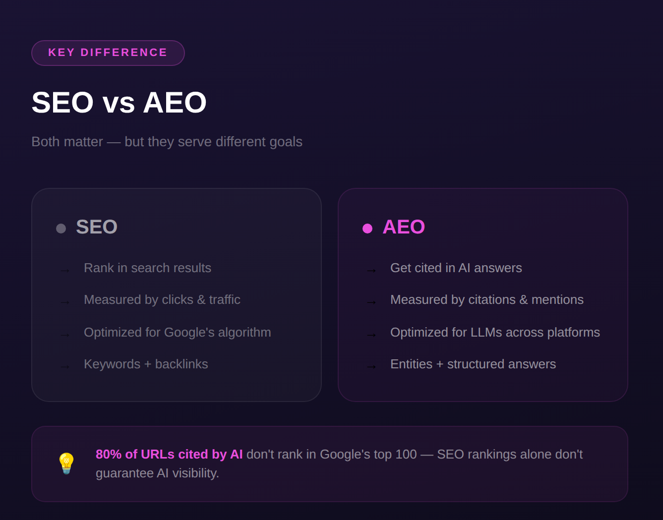 AEO and SEO are not competitors. They're complementary strategies that serve different stages of the modern search ecosystem. But the differences between them are significant enough that treating AEO as "just another SEO tactic" will leave you behind.